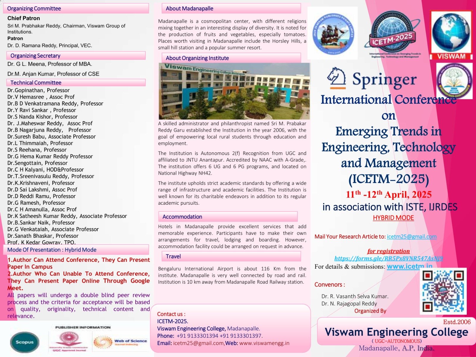 The aim of the International Conference on Emerging Trends in Engineering, Technology & Management is to provide a dynamic platform for researchers, academicians, industry professionals, and students to share innovative ideas, research outcomes, and practical solutions that address current and future challenges. The conference encourages interdisciplinary collaboration across engineering, advanced technologies, and modern management practices. It promotes discussions on emerging areas such as AI, IoT, Industry 4.0, sustainable systems, smart manufacturing, and digital transformation, while supporting knowledge exchange, networking, and the development of impactful research and industry partnerships.